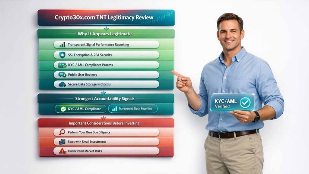For traders researching the broader crypto30x.com blockchain review landscape, these legitimacy indicators — particularly KYC/AML compliance and transparent signal reporting — are among the strongest signals that the platform operates with accountability.