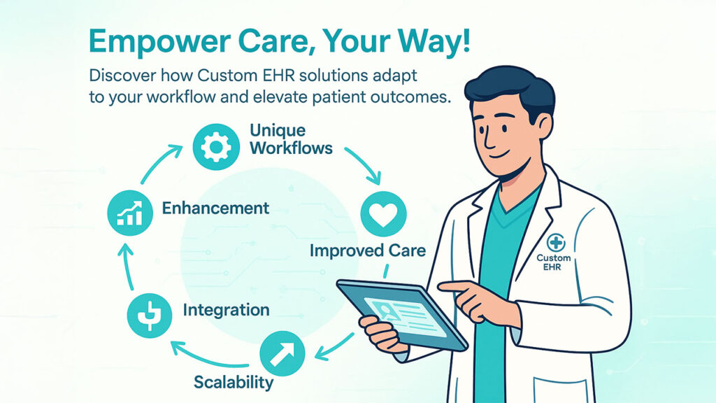Custom EHR systems can include unique abilities that distinguish your services from competitors. Whether it is a better patient experience through a modern portal or AI-powered clinical aid, it becomes easier to apply innovation.