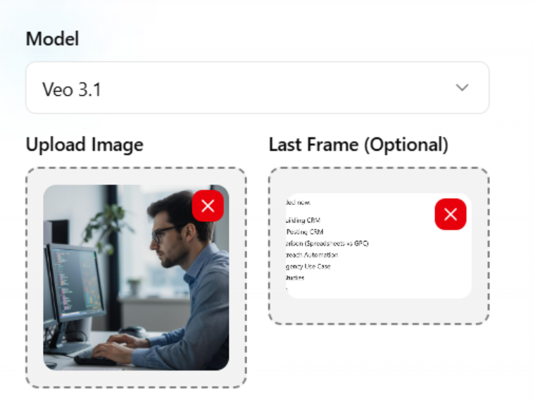4. Then, you need to upload your image. You can also select a last frame image, which is optional and only supported in Veo 3.1 and Vidu Q2.