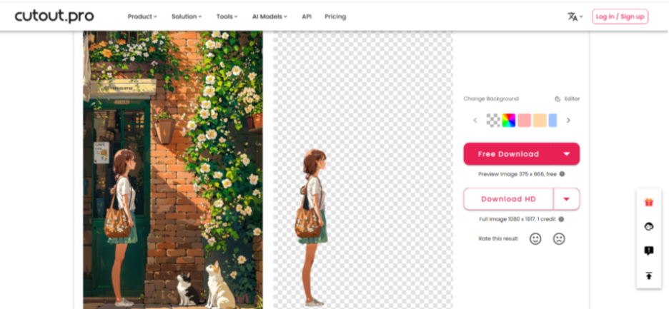 The functionality of background removal has been one of the most valuable features of Cutout Pro. The AI background remover detects and removes backgrounds automatically from both videos and images without needing manual masking or green screens.