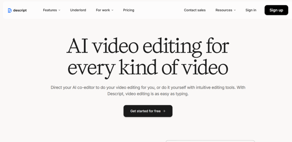 Numerous tools have been released for AI video editing, as they help marketers and creators simplify their video production. However, none can match the quality and capability of Descript AI. It is a fully featured tool for video and podcast editing specialized to streamline content creation. It allows users to edit audio and video content in a simple way, as simple as editing a document, by transcribing recordings into text accurately. The tool offers a cutting-edge approach to editing your videos with a broad range of AI-driven features. This can enable any user, ranging from novice to professional editors, to create professional-level audio and video content efficiently and quickly.