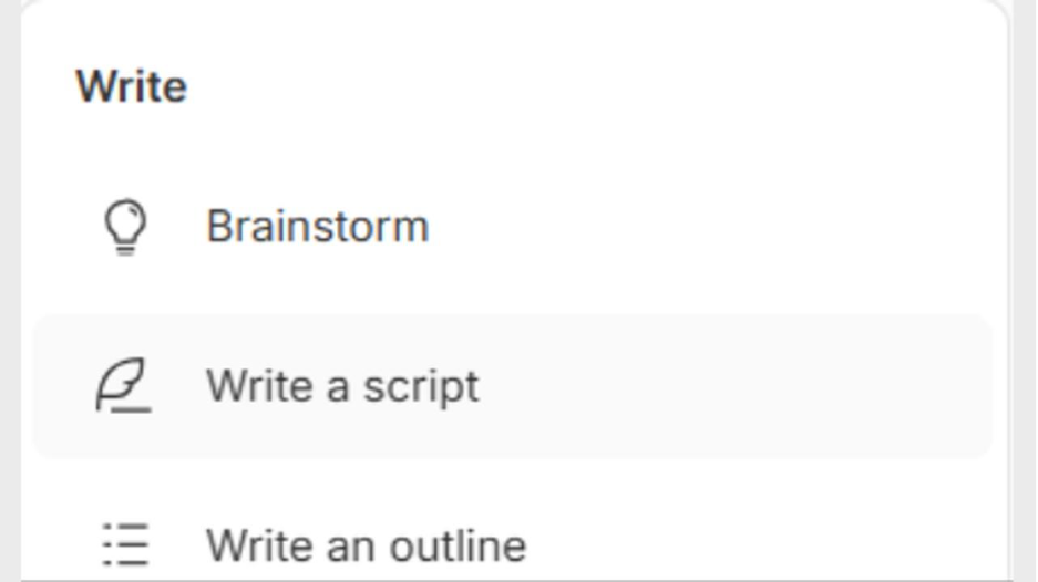 E) Write: The AI features of the platform also allow you to brainstorm ideas, write an outline, or write a script.