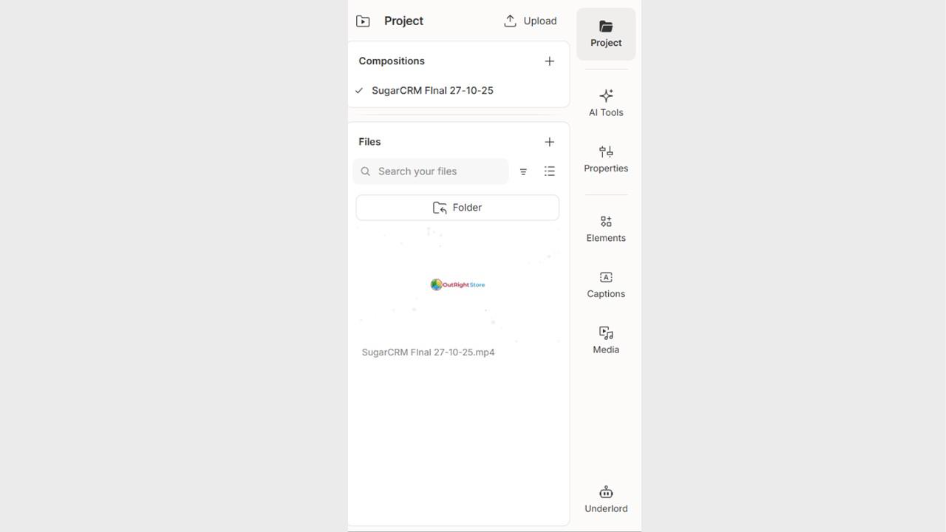 - Click on the “Project” option on the right hand of the screen to see all your files and compositions.