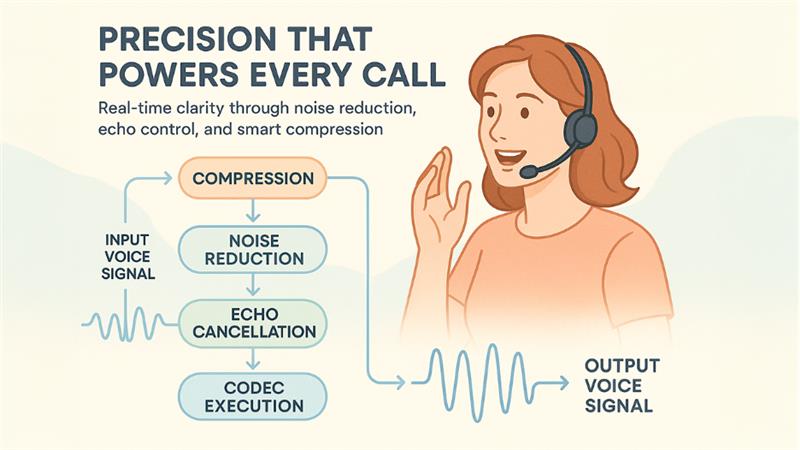 DSP chips shape voice quality by managing the audio experience in real time. They handle compression, echo cancellation, noise reduction, and codec execution. Their job is to ensure the clarity of voices, even in busy environments or across long distances. Without an efficient DSP, conversations suffer from distortion, latency, or background noise.