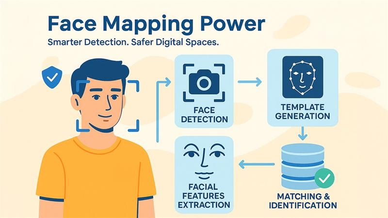 Template generation is when the system turns a face into a numerical representation. This means the system doesn’t store an image but creates a unique mathematical template. It starts by detecting facial landmarks and key points that represent the face’s shape.
