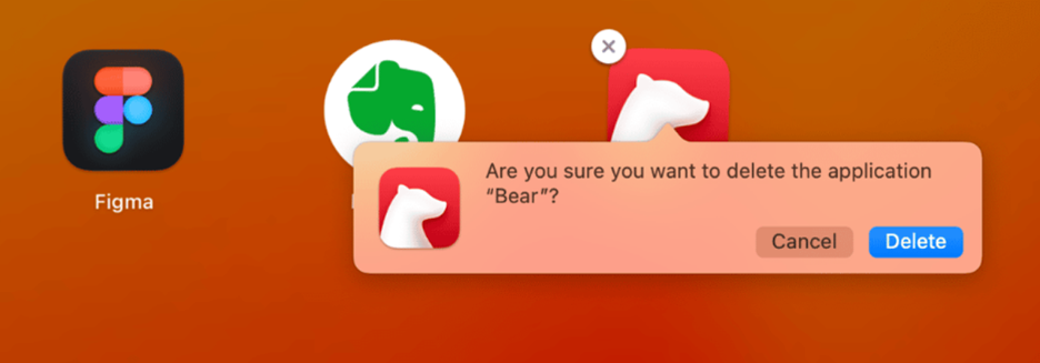 - Click the X icon to delete the app. If you are having trouble doing this, you may need to press the Option key if needed.