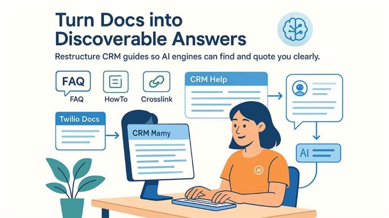 If your CRM help center reads like a novel, AI answer engines will skip it. Perplexity, ChatGPT, and Gemini aren’t “reading”—they’re extracting. The brands winning visibility aren’t just publishing more tutorials; they’re re-structuring docs so a machine can find a discrete question, a single answer, and the breadcrumb trail that proves it’s trustworthy. This allows you to rank CRM guides more effectively and transform conventional tutorials into compelling content that shows up as the answer.