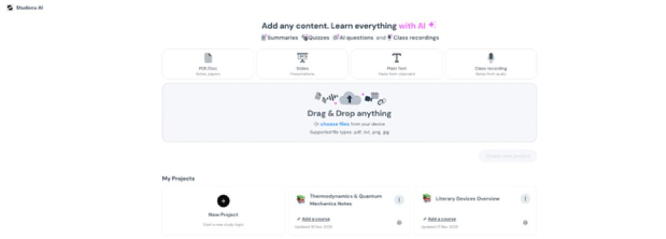 With the AI platform, students can create this repository by uploading personal notes, lecture slides, summaries, and solved exercises into one space. Additionally, they can also create course-based projects, which can become an organized, categorical knowledge base for the coursework taken by the student.