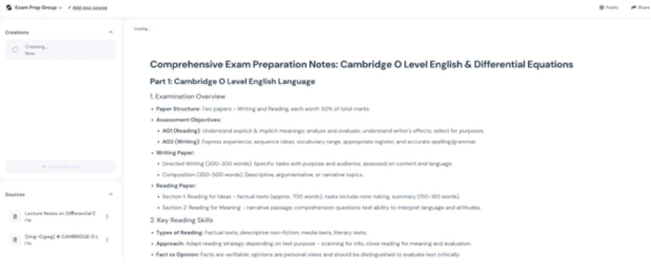 Initially, most notes are uncategorized and messy, but learners can organize them into summaries, topic sheets, and clearly defined exam guides. AI-powered tools help in summarizing long texts, generate questions to practice, or convert dense content into comprehensible formats.