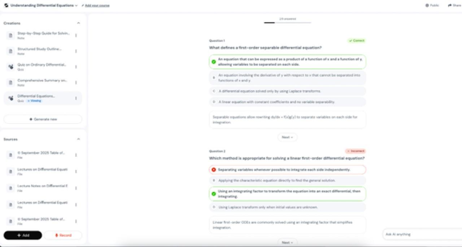 For example, a student studying differential equations could instantly generate a quiz through the tool for self-evaluation. By generating a personalized quiz, the student can revise the concepts and receive immediate feedback on their knowledge and progress.